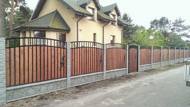 grodzenia betonowo-drewniane składające się z elementów: